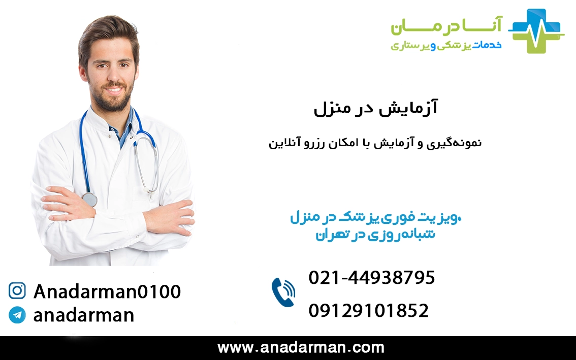 💡 اگر به آزمایش در منزل نیاز دارید، هماکنون با مرکز آنادرمان تماس بگیرید تا در کوتاهترین زمان ممکن از خدمات حرفهای ما بهرهمند شوید.